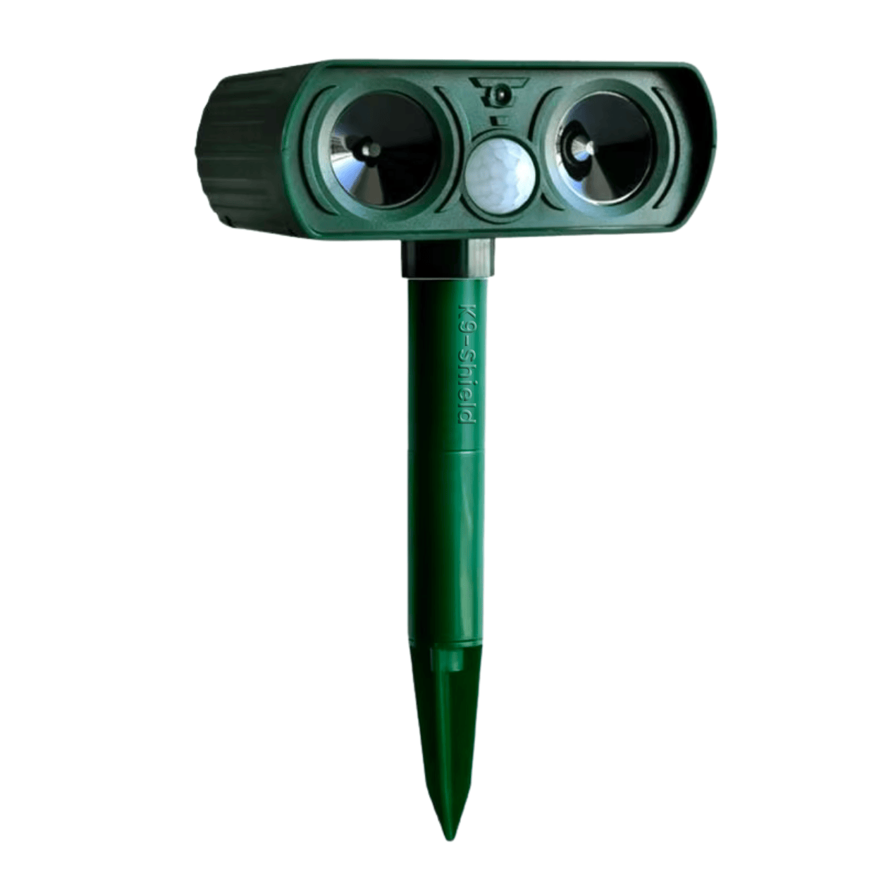 È sufficiente piantare il dispositivo nel terreno. Il suo sensore PIR rileva la presenza dei cani e attiva automaticamente l’emissione di ultrasuoni per respingerli.